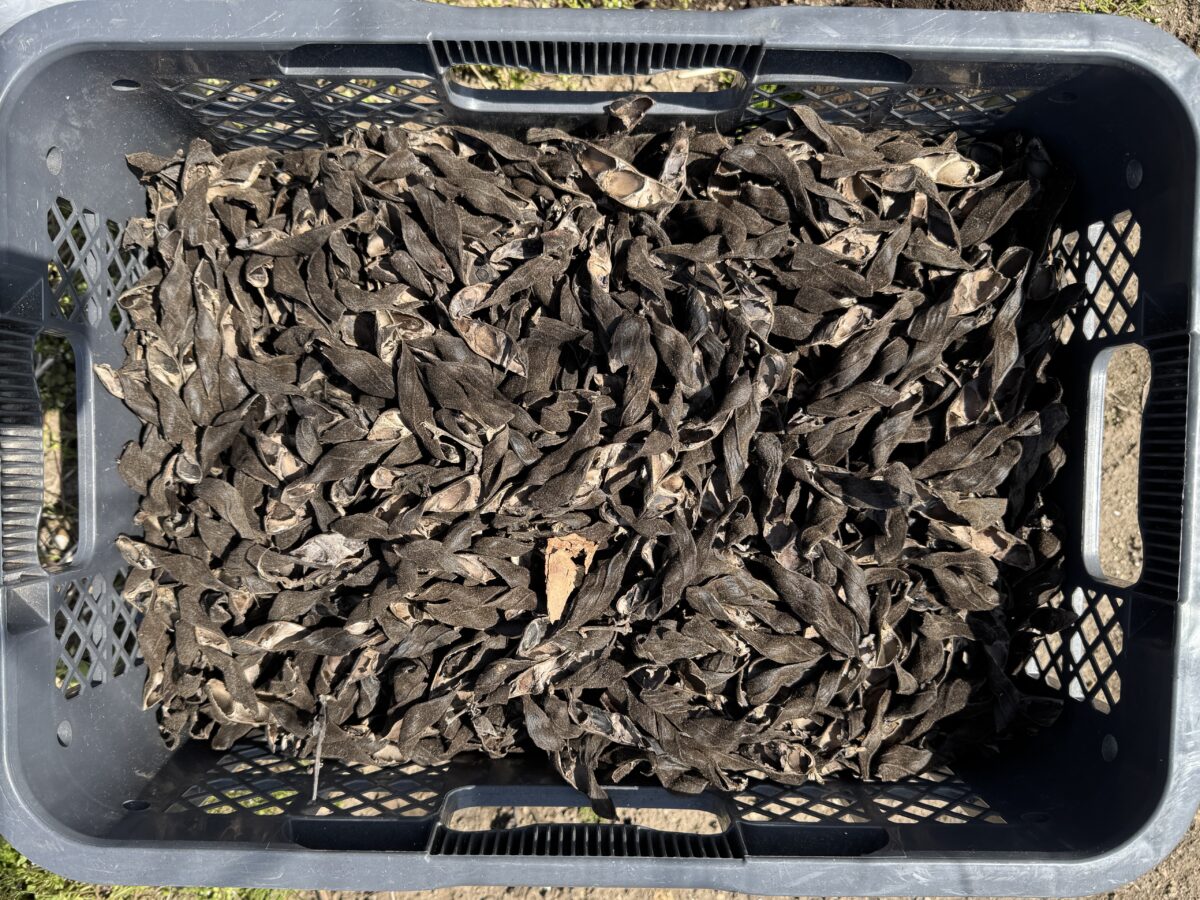 サヤそのものにも窒素分などの栄養があるし、土作りにはもってこいの資材です♪